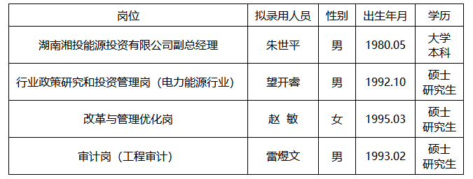 湖南省能源投资集团有限公司公开招聘拟录用人员公示